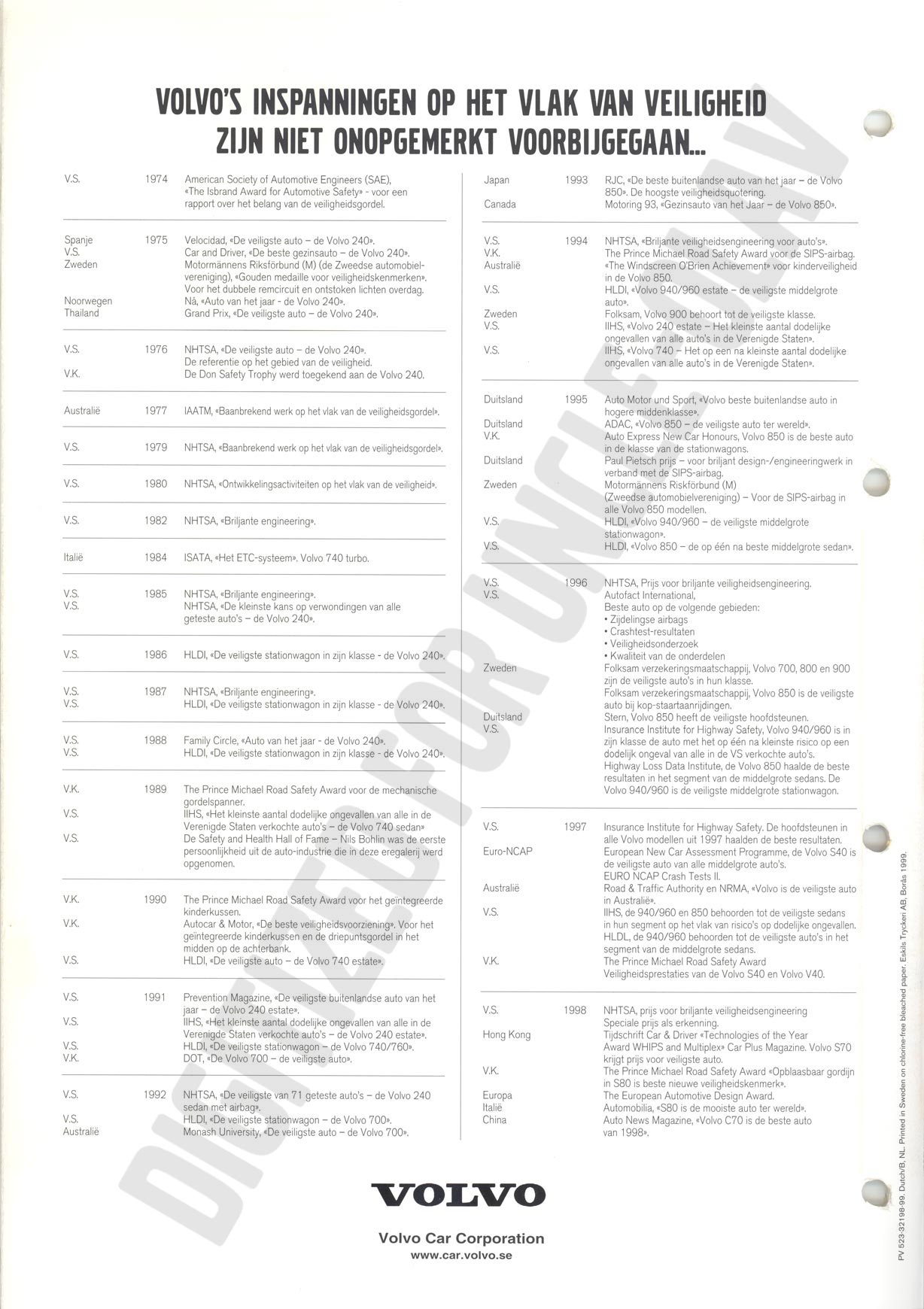 BROCHURE VPT De veiligste auto - 1999 [PV 523-32198-99, Dutch - B/NL]