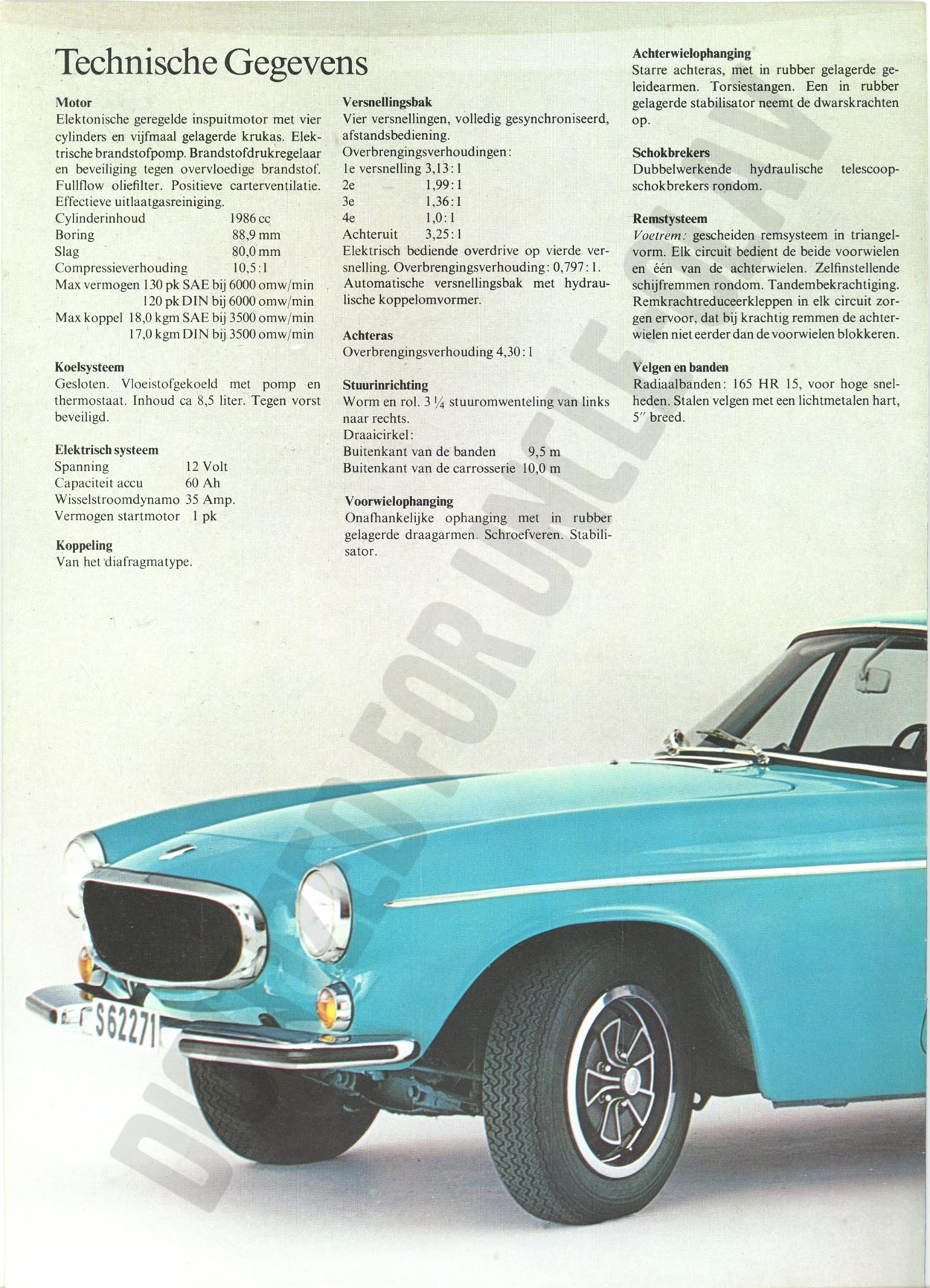 BROCHURE VOLVO 1800 E - 1970 [RSP 50091. 8. 70, Dutch - NL]