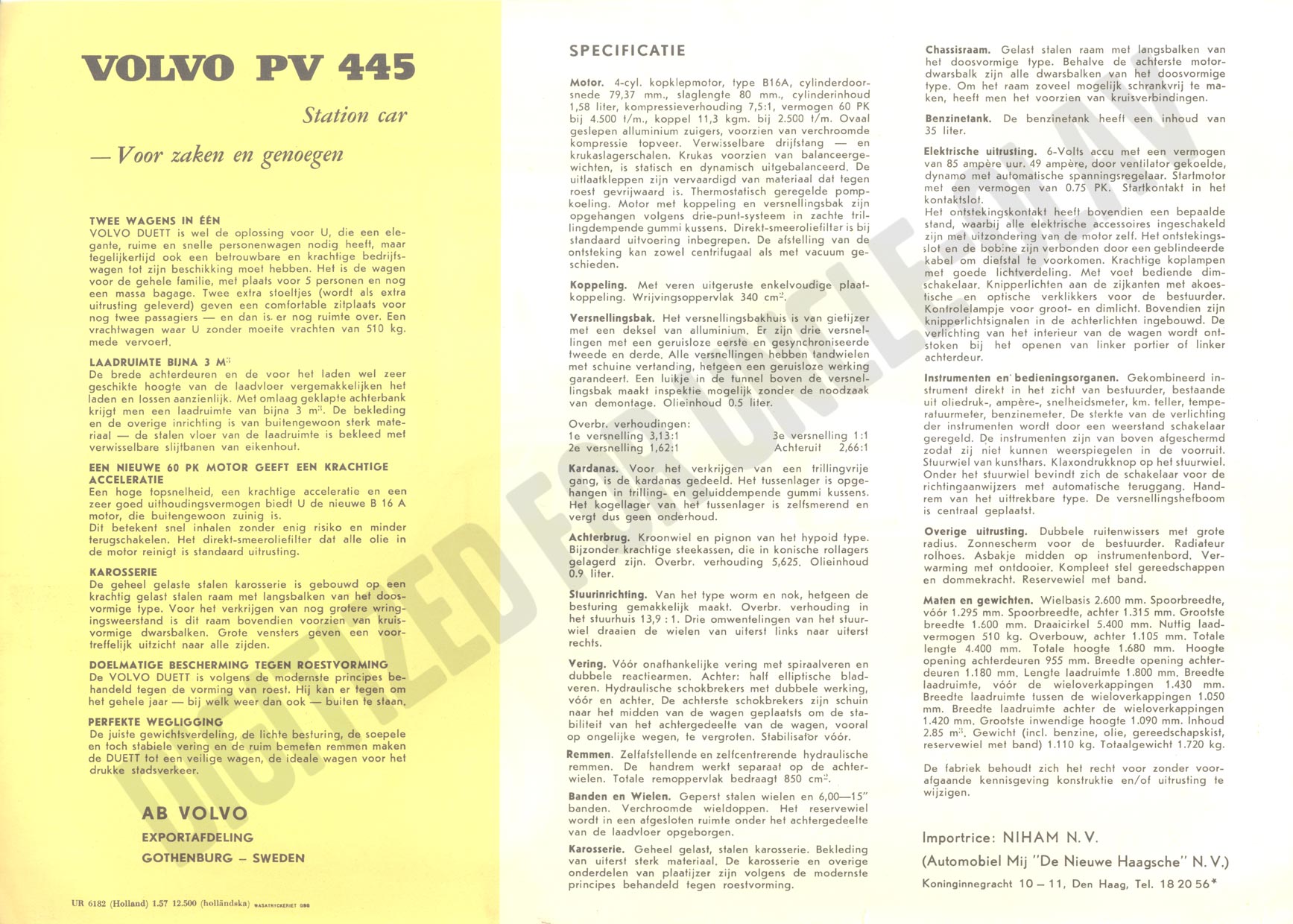 FOLDER VOLVO 445 - 1957 [UR 6182 1.57 12.500, Dutch - NL]