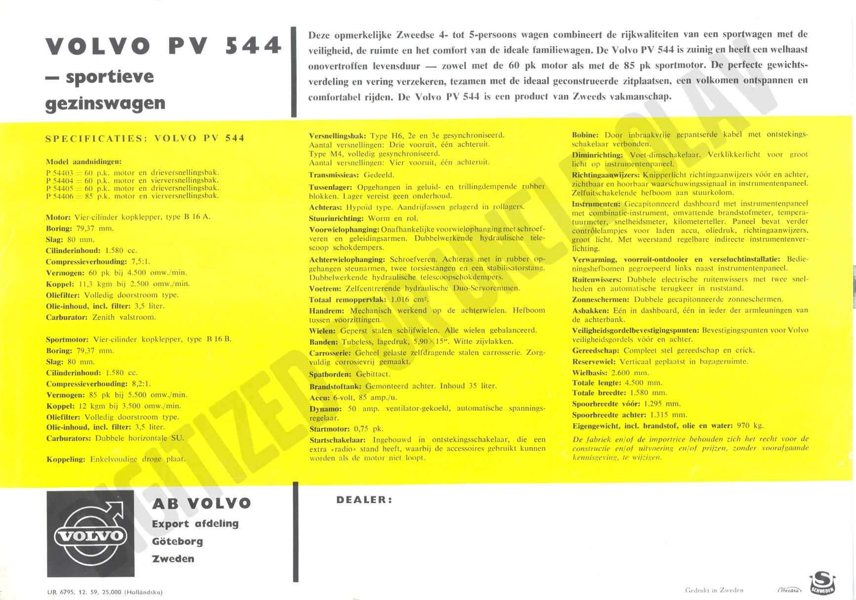 FOLDER VOLVO 544 - 1959 [UR 6795. 12. 59. 25.000, Dutch - NL]