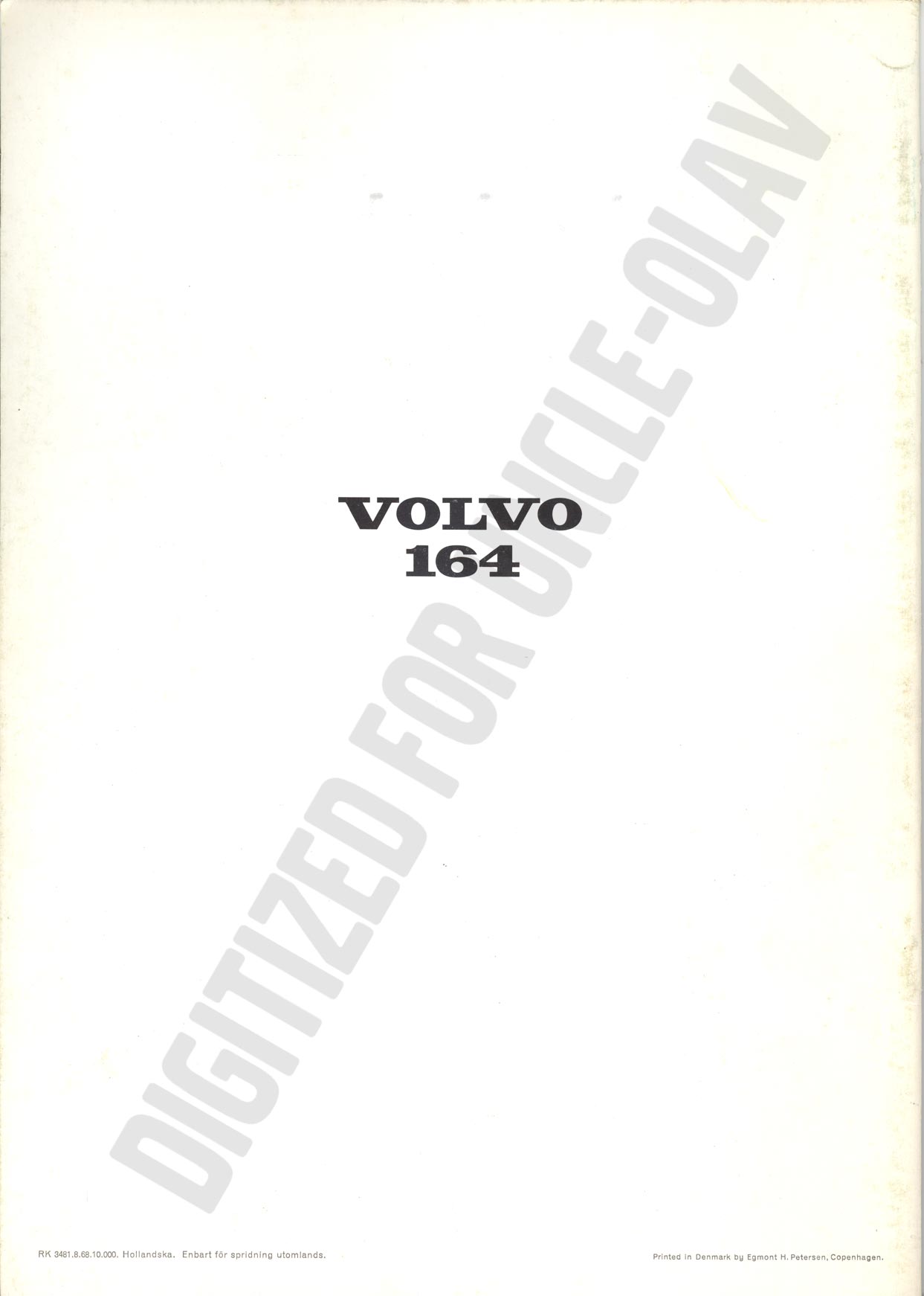 BROCHURE VOLVO 164 - 1968 [RK 3481. 8. 68. 10.000, Dutch - NL]